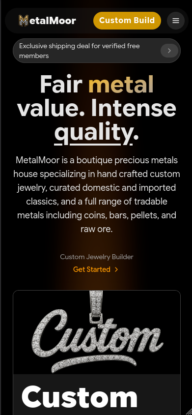 Custom digital platform supporting bespoke jewelry creation and precious metal exchange.